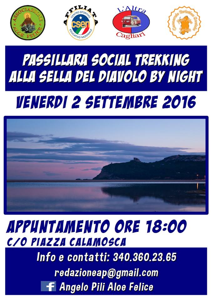 PASSILLARA SOCIAL TREKKING ALLA SELLA DEL DIAVOLO BY NIGHT – CAGLIARI – VENERDI 2 SETTEMBRE 2016