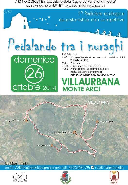 Domenica 26 Ottobre si terrà la prima edizione di “pedalando tra i nuraghi” a cura della “Asd non solo bike”. Un’occasione unica per scoprire alcuni tra i più importanti nuraghi di Villaurbana (accompagnati da esperti conoscitori del luogo e dall’Associazione Nurnet) insieme alle bellezze naturalistiche del Monte Arci. Al termine, pranzo presso lo stand “sa domu e su forru” a base di bue rosso e pane fatto in casa. Iscrivetevi…