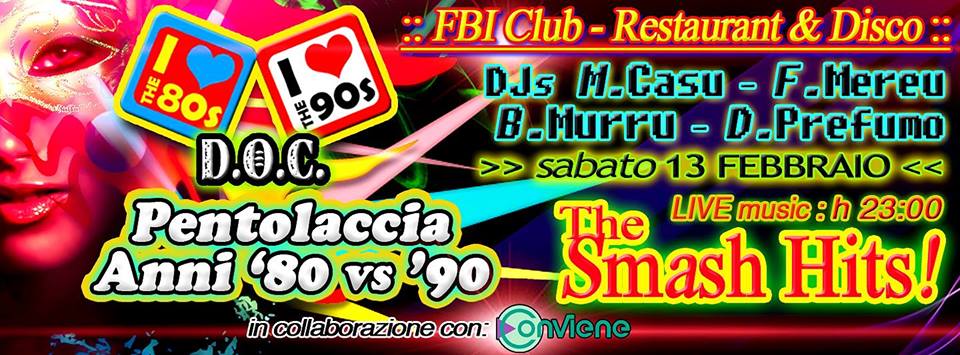 PENTOLACCIA ANNI 80 & 90 – FBI DISCO CLUB- QUARTU SANT’ELENA – SABATO 13 FEBBRAIO 2016