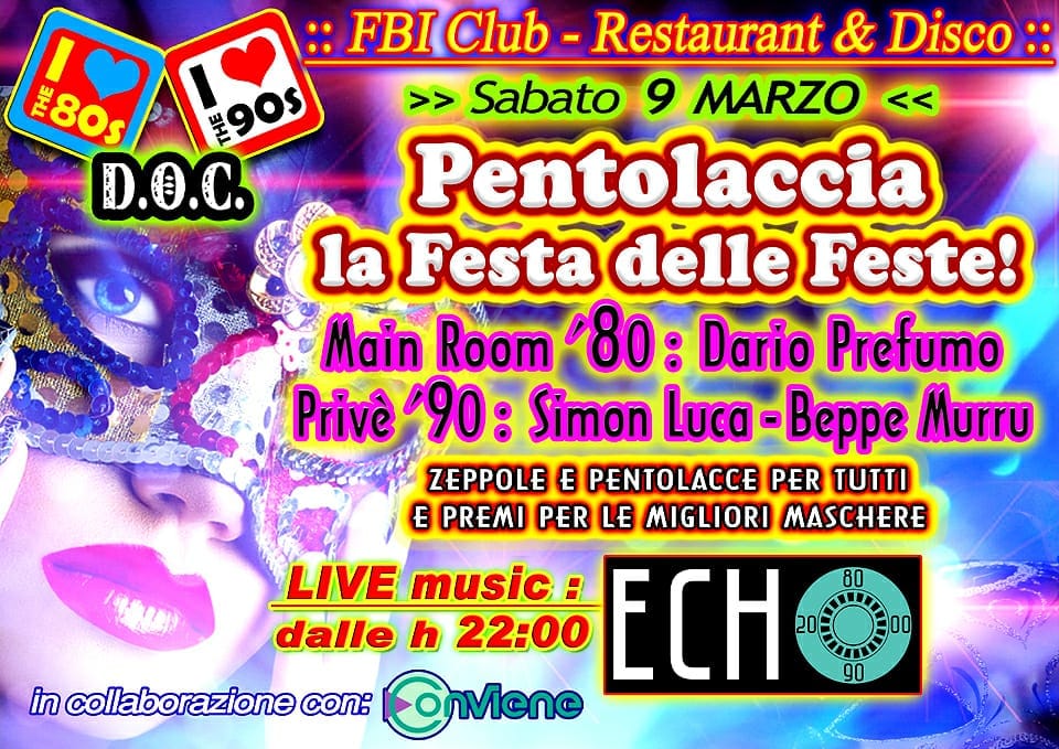 PENTOLACCIA- LA FESTA DELLE FESTE – FBI DISCO CLUB-QUARTU SANT’ELENA – SABATO 9 MARZO 2019