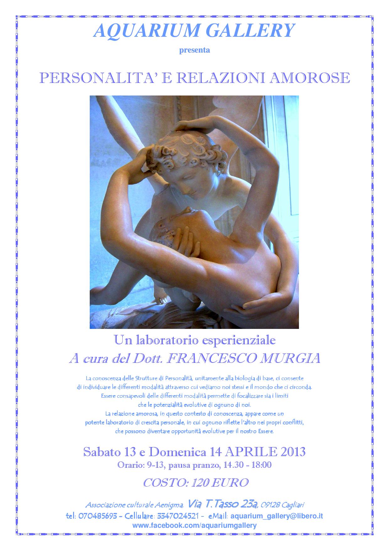 PERSONALITA’ E RELAZIONI AMOROSE – AQUARIUM GALLERY – CAGLIARI – SABATO 13 e DOMENICA 14 APRILEPERSONALITY ‘AND LOVING RELATIONSHIP – CAGLIARI- SATURDAY 13 and SUNDAY AVRIL 14