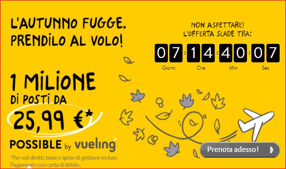 PRENDI AL VOLO L’AUTUNNO – VOLA CON VUELING A PARTIRE DA 25,99 €