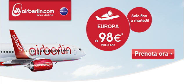 PRENOTA LA TUA VACANZA IN EUROPA CON AIR BERLIN A PARTIRE DA 98 €BOOK YOUR HOLIDAY IN EUROPE WITH AIR BERLIN FROM 98 €