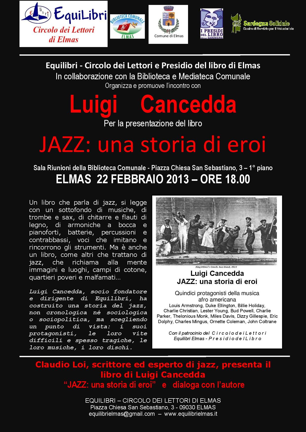 PRESENTAZIONE DEL LIBRO “JAZZ:UNA STORIA DI EROI” – BIBLIOTECA COMUNALE – ELMAS- VENERDI 22 FEBBRAIO PRESENTATION BOOK “JAZZ: AN HISTORY OF HEROES” – COMUNAL LIBRARY – ELMAS- FRIDAY FEBRUARY 22