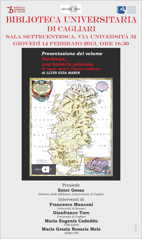 Presentazione del libro: Sardenya, una història pròxima. El regne sard a l’època moderna di Lluis Guia Marin. Presiede Ester Gessa, interventi di Francesco Manconi, Gianfranco Tore, Maria Eugenia Cadeddu, Maria Grazia Rosaria Mele