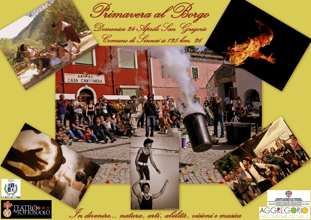 Domenica 24 Aprile nel suggestivo Borgo di San Gregorio Sinnai prende il via la manifestazione organizzata dal Teatro del Sottosuolo e l’Associazione Aggregorio  “ Primavera al borgo “ inserita all’interno del progetto TerrAccogliante a cura del Comune di Sinnai, Associazione Turistica Proloco, Associazione Internazionale Città della Terracruda e con il patrocinio dalla Regione Autonoma della Sardegna Assessorato della Pubblica Istruzione, beni Culturali, Informazione, Spettacolo e Sport. .