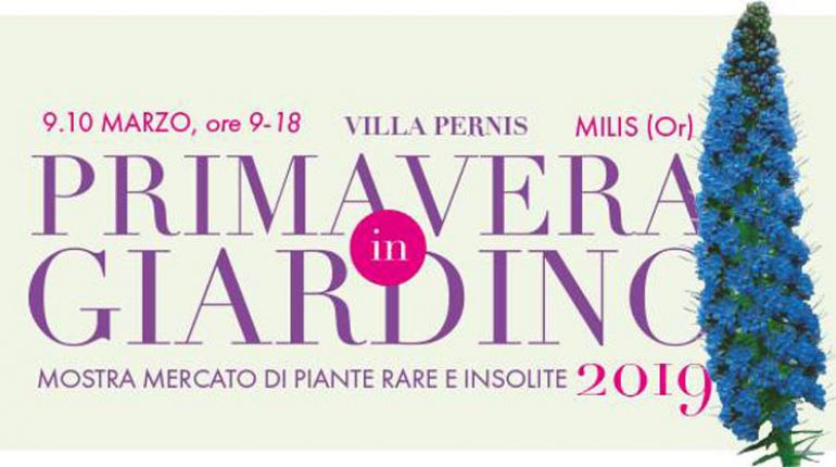 primavera-in-giardino-milis-manifesto-2019-770x430sono state annunciate le date della diciannovesima edizione di “Primavera in Giardino” a Milis(subito a nord di Oristano). L’atteso nuovo appuntamento con la grande manifestazione dedicata al vivaismo specializzato, si svolgerà infatti il 9 e 10 marzo 2019, come sempre presso la splendida cornice degli aranceti di Villa Pernis . Come ci saranno tante esposizioni, consigli e curiosità sia per gli esperti del settore che per gli appassionati di giardinaggio (tra giardini, orti e frutteti). In programma infatti mostre, incontri, conferenze, installazioni, laboratori e punti ristoro.