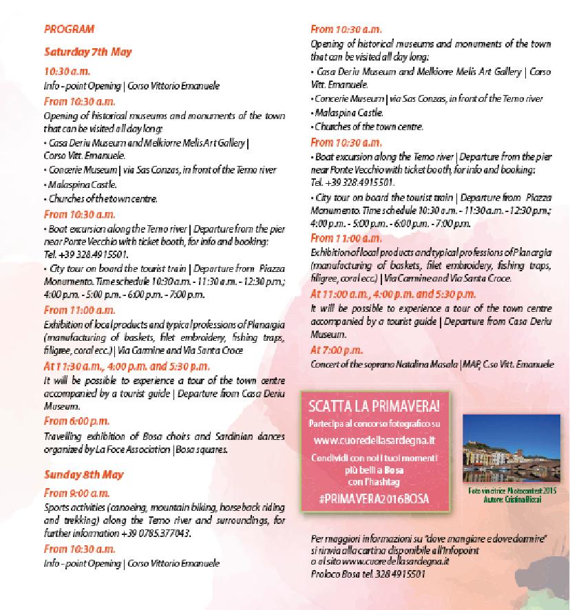 Primavera in Ogliastra,Marghine e Baronia fa tappa a Bosa il 7-8 maggio ECCO IL PROGRAMMAPrimavera in Ogliastra,Marghine e Baronia fa tappa a Bosa il 7-8 maggio ECCO IL PROGRAMMA