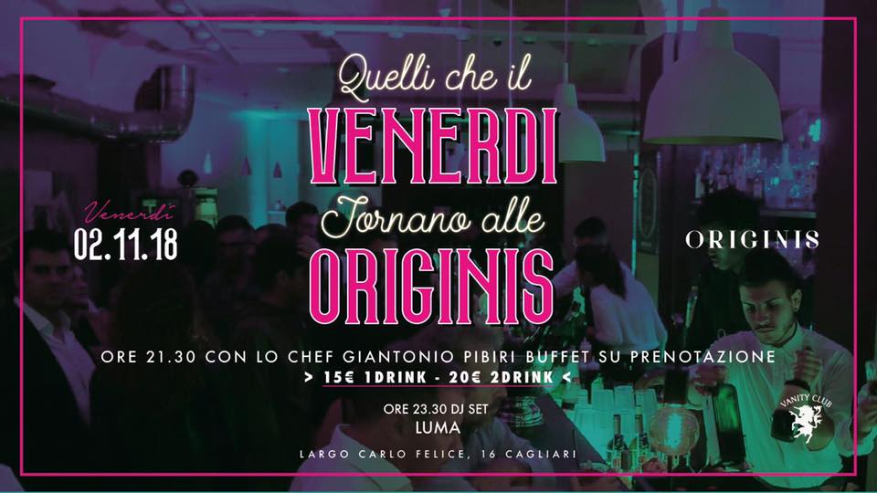 ORIGINISContinua il nuovo pre-serata #Quelli_cheilVENERDI_tornano_alleORIGINIS al centro di Cagliari nel bellissimo locale ORIGINIS (nel largo Carlo Felice n16)