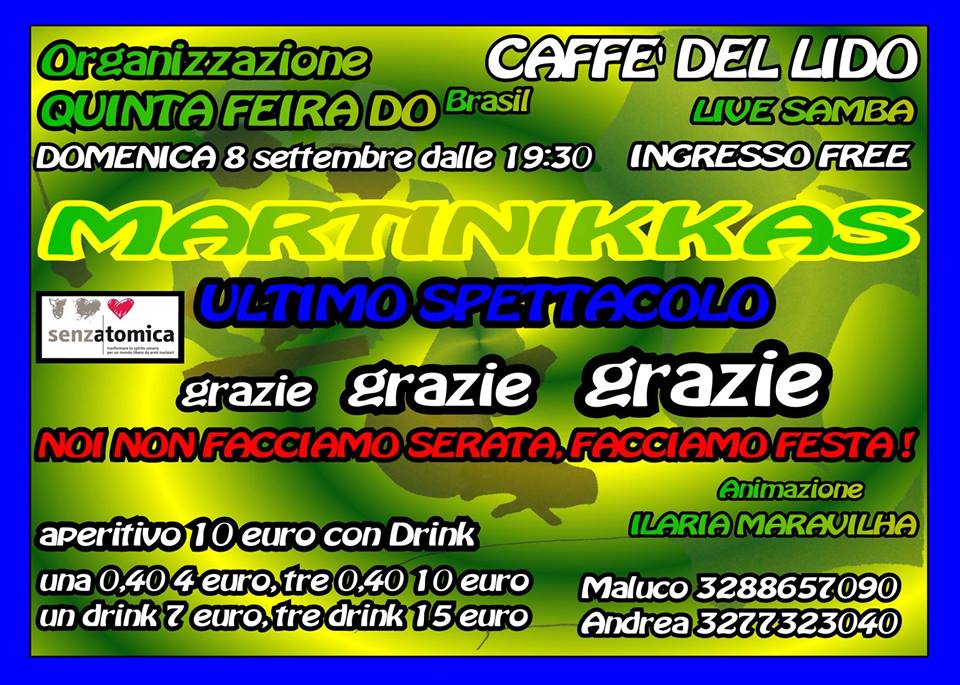 I MARTINIKKAS NA PEGADA DOS MALUCOS con il loro live (il samba, il pagode, il funky, targato ITALIA BRASIL style).