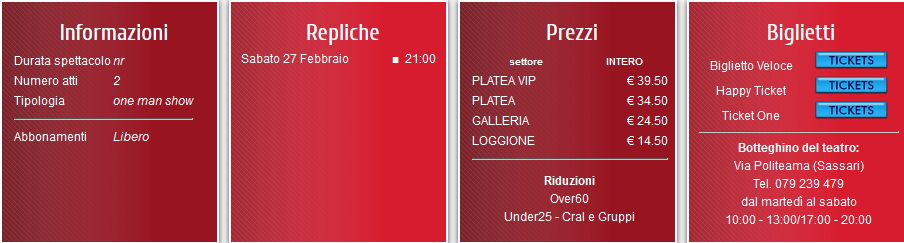 RICCARDO ROSSI – L’AMORE E’ UN GAMBERO – NUOVO TEATRO VERDI -SASSARI – SABATO 27 FEBBRAIO 2016 Reviewed by admin on . RICCARDO ROSSI L'AMORE E' UN GAMBERO Scritto da RICCARDO ROSSI e ALBERTO DI RISIO Senza amore non si vive. Siamo tutti d’accordo. Non esiste una persona al mond RICCARDO ROSSI L'AMORE E' UN GAMBERO Scritto da RICCARDO ROSSI e ALBERTO DI RISIO Senza amore non si vive. Siamo tutti d’accordo. Non esiste una persona al mond Rating: 0