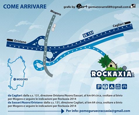•da Sassari/Nuoro/ Oristano: dalla s.s. 131, direzione Cagliari, al Km. 64 circa, svoltare al bivio per Mogoro e seguire le indicazioni per Rockaxia.