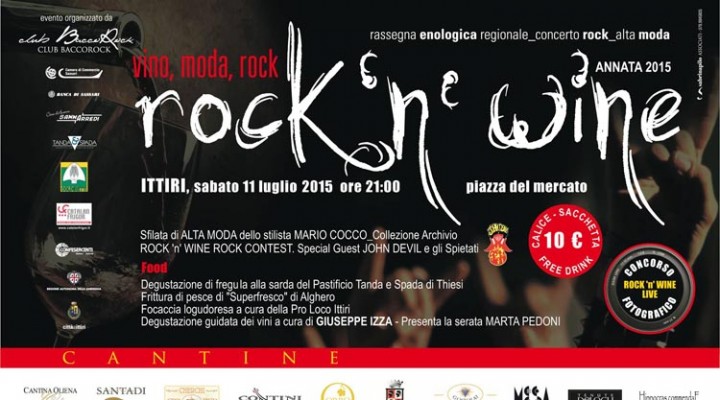 Si svolgerà sabato 11 luglio 2015 in piazza XXV Luglio a Ittiri, a partire dalle ore 21:00, l’ottava edizione di Rock’n Wine, l’attesa rassegna enologica organizzata dall’associazione Club Baccorock.