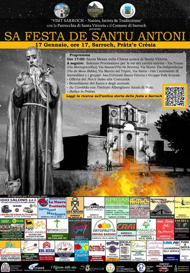 L’Assòtziu Cultùrali “VISIT SARROCH – Natùra, Istòria & Traditziònis” – con la Parrocchia di Santa Vittoria, il Comune di Sarroch e il prezioso contributo delle aziende ed associazioni del territorio – presenta Sa Festa de Santu Antoni