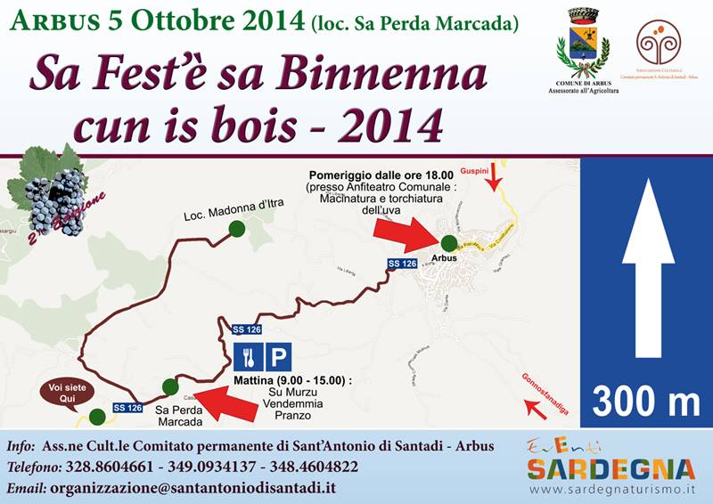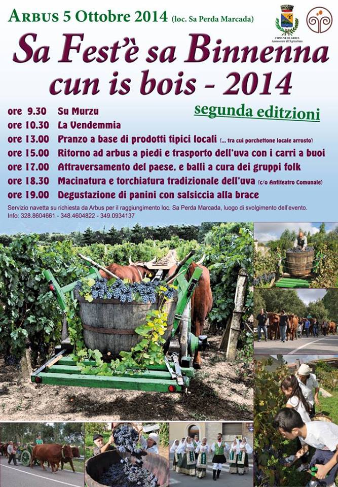 SA FEST’E’ SA BINNENNA – ARBUS – DOMENICA 5 OTTOBRE 2014HARVEST FESTIVAL – ARBUS – SUNDAY OCTOBER 5,2014 Reviewed by admin on . domenica 5 ottobre sa segunda editzioni de sa Binnenna cun is Bois. Vi aspettiamo ad Arbus, loc. Sa Perda Marcada, il 5 ottobre alle ore 9.00. Sunday, October 5 domenica 5 ottobre sa segunda editzioni de sa Binnenna cun is Bois. Vi aspettiamo ad Arbus, loc. Sa Perda Marcada, il 5 ottobre alle ore 9.00. Sunday, October 5 Rating: 0