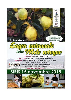 SAGRA AUTUNNALE DELLE MELE COTOGNE – SIRIS – DOMENICA 15 NOVEMBRE 2015