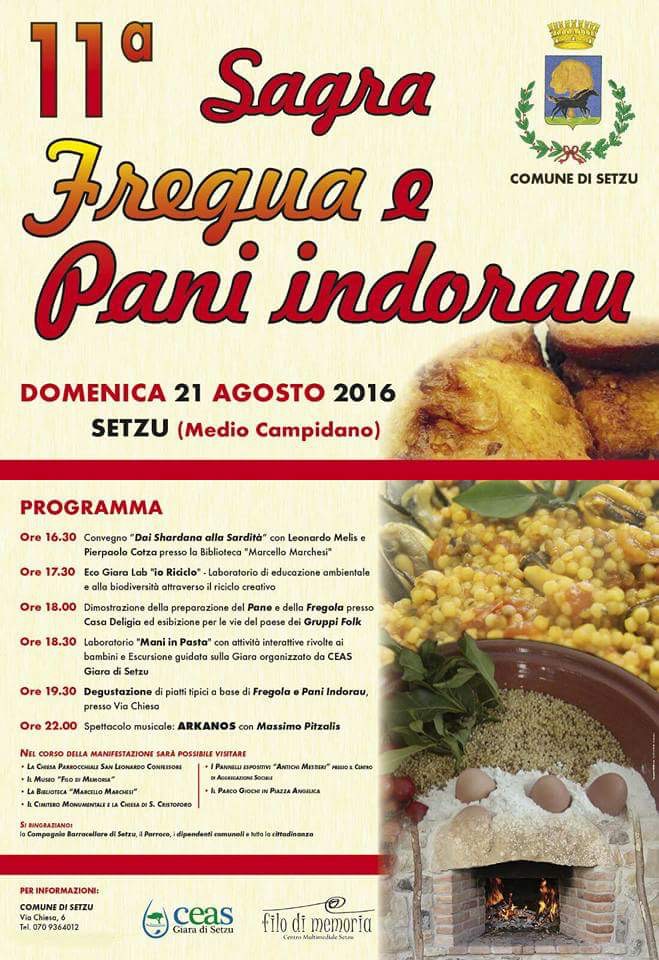 SAGRA DE SA FREGUA E DE SU PANI INDORAU – SETZU – DOMENICA 21 AGOSTO 2016 Reviewed by admin on . Domenica 21 Agosto a Setzu, paese del Medio Campidano, si terrà la sagra della Fregula e dei pani indorau. Ecco il programma della sagra, giunta alla 11esima ed Domenica 21 Agosto a Setzu, paese del Medio Campidano, si terrà la sagra della Fregula e dei pani indorau. Ecco il programma della sagra, giunta alla 11esima ed Rating: 0