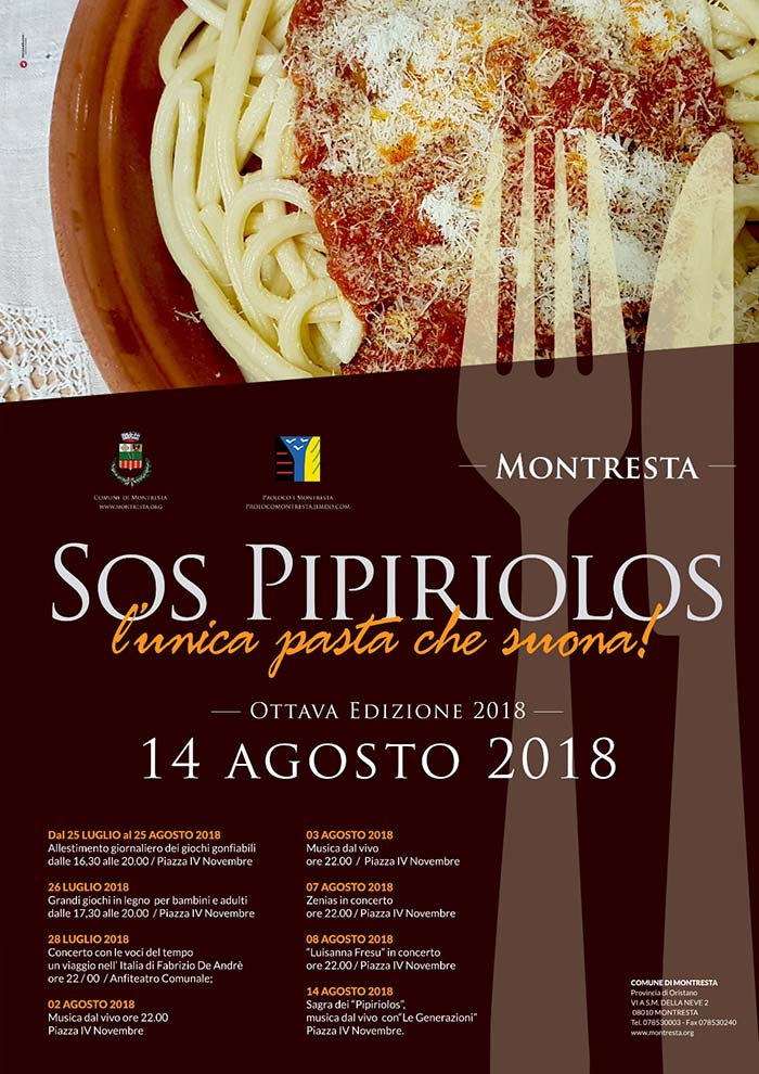 VIII sagra de sos pipiriolos: piatto tipico montrestino, (detta anche la pasta che suona) con musica dal vivo “le generazioni”.