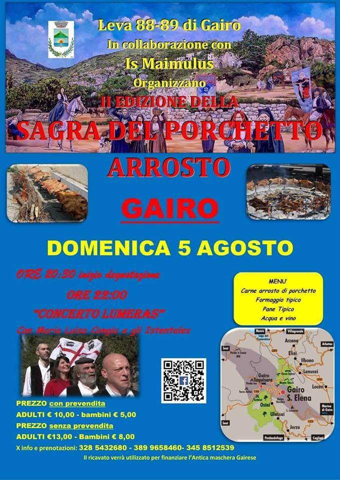 SAGRA DEL PORCHETTO ARROSTO – GAIRO – DOMENICA 5 AGOSTO 2018
