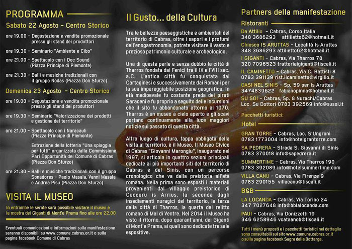 Sarà inoltre possibile visitare il museo civico e la mostra dei giganti di Mont’e Prama fino alle ore 22.00.