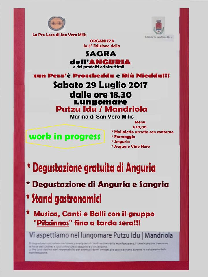 SAGRA DELL’ANGURIA – PUTZU IDU – SABATO 29 LUGLIO 2017