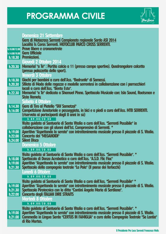 Sagra di San Vitalia Serrenti 3-7 ottobre 2014 Feast of St. Vitalia Serrenti 3-7 October 2014Sagra di San Vitalia Serrenti 3-7 ottobre 2014 Feast of St. Vitalia Serrenti 3-7 October 2014