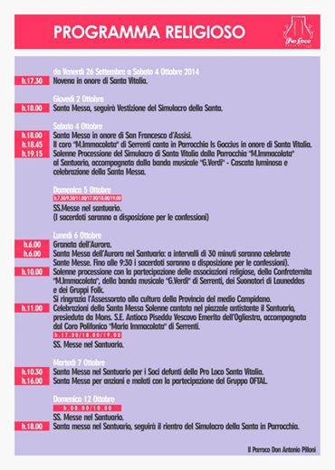 SAGRA DI SANTA VITALIA – SERRENTI – 3-7 OTTOBRE 2014SANTA VITALIA FESTIVAL – SERRENTI – OCTOBER 3 TO 7,2014