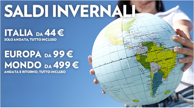 Acquista entro il 22 gennaio 2015! n Italia a partire da 44€ solo andata, in Europa da 99€ e nel mondo da 499€ andata e ritorno, tutto incluso.