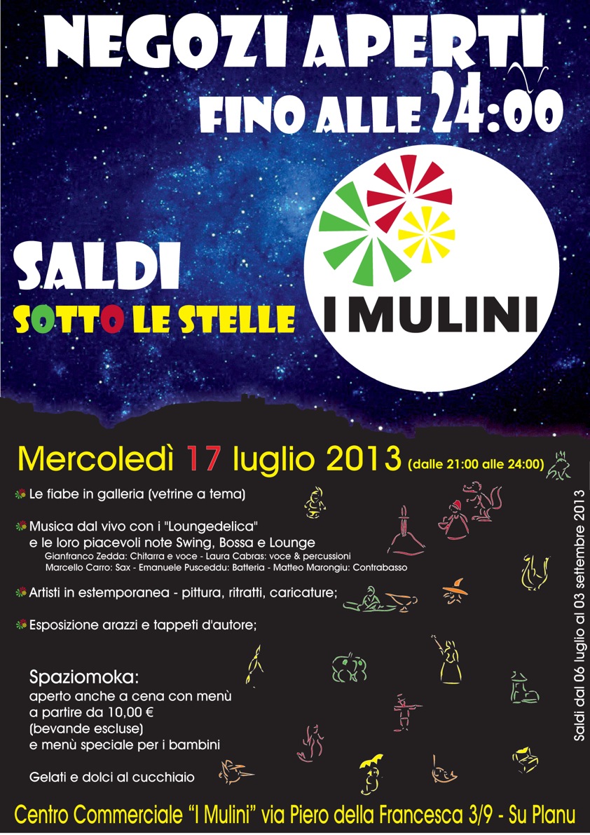 SALDI SOTTO LE STELLE – CENTRO COMMERCIALE I MULINI – MERCOLEDI 17 LUGLIO 2013SALES UNDER THE STARS – COMMERCIAL CENTER I MULINI – WEDNESDAY JULY 17