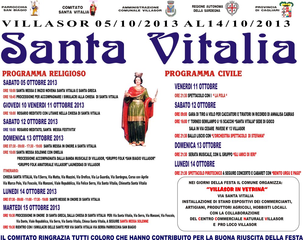 SANTA VITALIA 2013 – PROGRAMMA COMPLETO -VILLASOR – 5-15 OTTOBRE 2013SANTA VITALIA 2013 – FULL PROGRAM – VILLASOR – OCTOBER 5 TO 15
