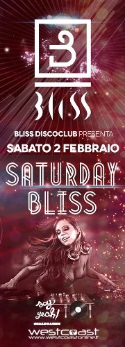 SATURDAY BLISS – BLISS CLUB – CARBONIA – SABATO 2 FEBBRAIOSATURDAY BLISS – BLISS CLUB- CARBONIA – SATURDAY FEBRUARY 2 Reviewed by admin on . Non si può toccare l'alba se non si sono percorsi i sentieri della notte. -Kahlil Gibran- I primi giorni della settimana passano e l'appuntamento del sabato si Non si può toccare l'alba se non si sono percorsi i sentieri della notte. -Kahlil Gibran- I primi giorni della settimana passano e l'appuntamento del sabato si Rating: