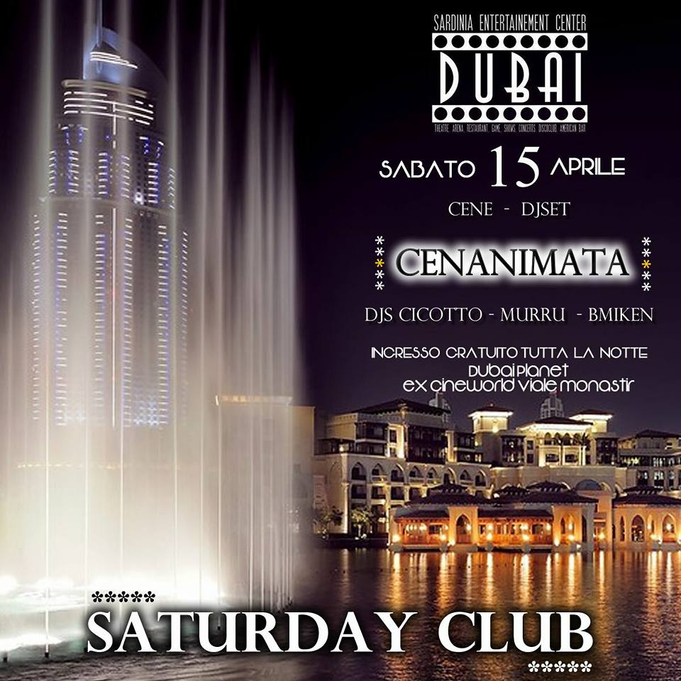 SATURDAY CLUB- DUBAI PLANET -CAGLIARI – SABATO 15 APRILE 2017
