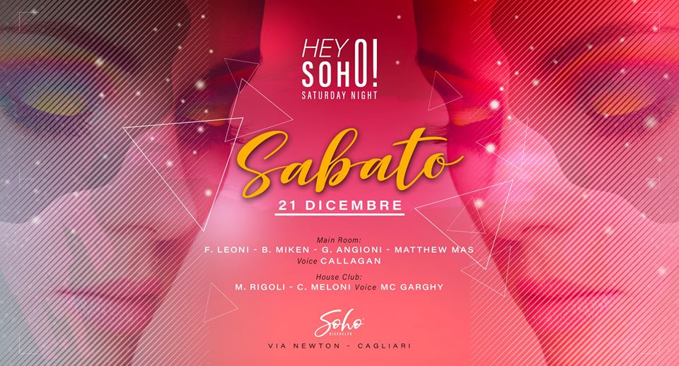 SATURDAY NIGHT – SOHO – CAGLIARI – SABATO 21 DICEMBRE 2019
