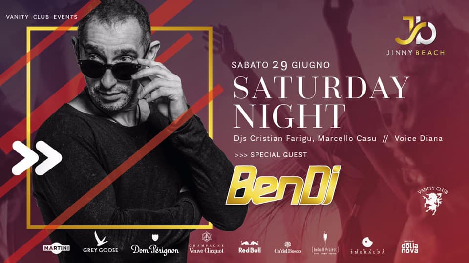SATURDAY NIGHT – SPECIAL GUEST BEN DJ – JINNY BEACH – QUARTU SANT’ELENA- SABATO 29 GIUGNO 2019