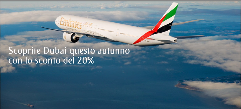 SCONTO 20% PER VOLARE A DUBAI CON EMIRATESSAVE 20% OFF FOR FLY TO DUBAI WITH EMIRATES