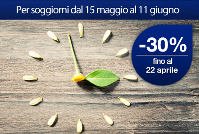 Booking a hotel in Italy by April 22, 2014, and staying in the period between May 15 and June 11, 2014, you will get a discount of 30%.