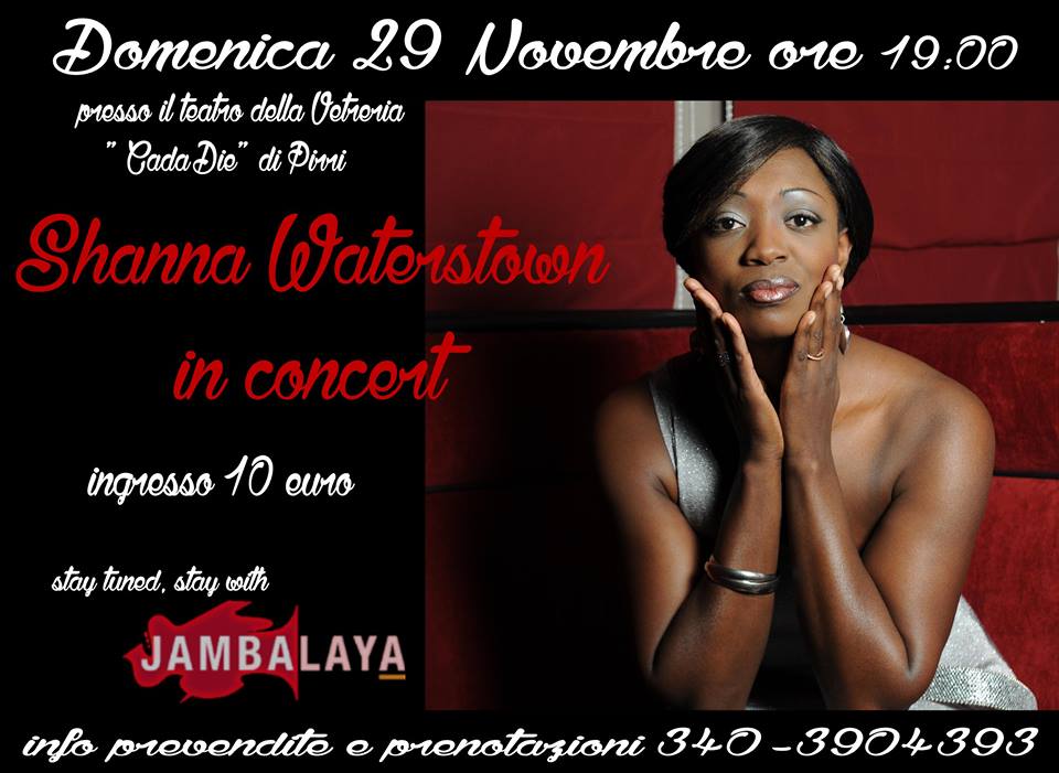SHANNA WATERSTOWN IN CONCERTO – TEATRO LA VETRERIA – PIRRI – DOMENICA 29 NOVEMBRE 2015