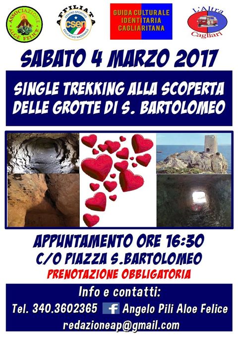 Aloe Felice insieme a Speed Date New Love Sardinia, organizzano sabato 4 marzo, una passillara alla scoperta dei colli di S. Bartolomeo e S.’Ignazio, della Cagliari Segreta ex militare.