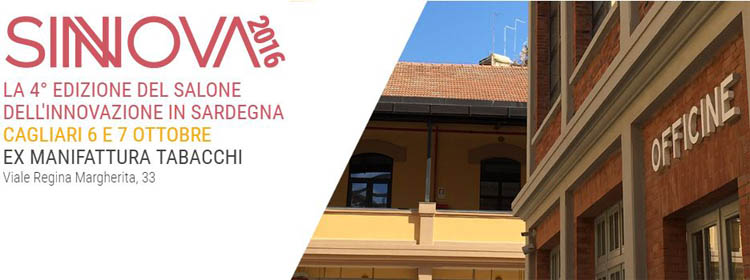 Sinnova : si svolgerà a Cagliari il 6 e 7 ottobre 2016 la quarta edizione di SINNOVA, il “Salone dell’Innovazione in Sardegna”, che quest’anno cambia sede per trasferirsi nei locali appena restaurati dell’Ex Manifattura Tabacchi in viale Regina Margherita. Il tema dell’edizione 2016 della manifestazione – organizzata come sempre da Sardegna Ricerche con la collaborazione dell’Assessorato regionale della Programmazione, Bilancio, Credito e Assetto del Territorio – sarà “Sardinia, land of innovation“.