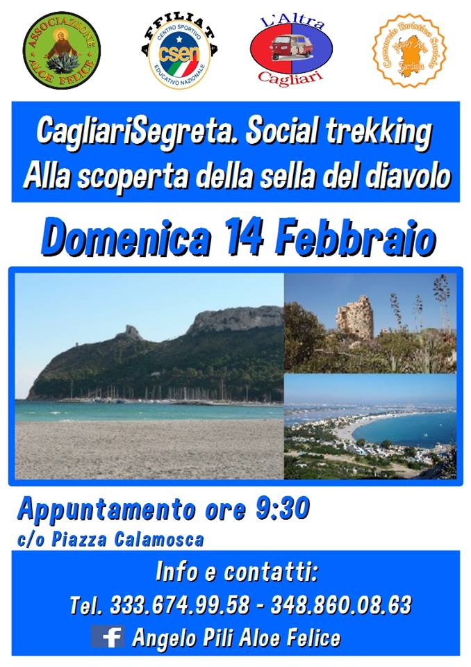 Le associazioni Aloe Felice e L’Altra Cagliari, organizzano per domenica 14 febbraio, un’escursione SOCIAL TREKKING al colle di S.ELIA e SELLA DEL DIAVOLO.