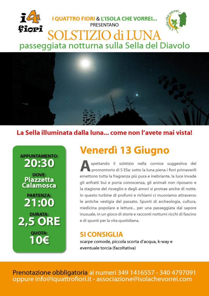 Friday, June 13 celebrates the full moon with the associations and the Four Flowers The Island that I would like: “SOLSTICE MOON” night walk on the Sella del Diavolo “.