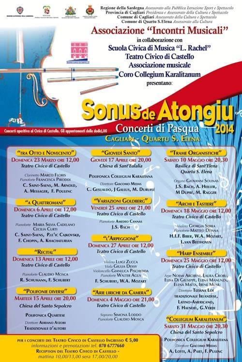 ecco il calendario completo della manifestazione Sonus de Atongiiu 2014 che si svolgerà al Teatro Civico di Castello di Cagliari