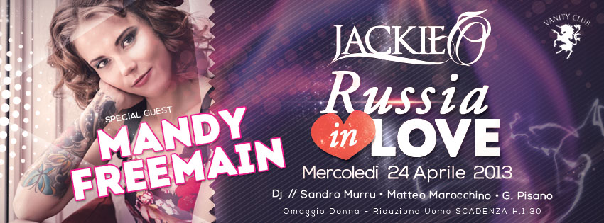 SPECIAL GUEST MANDY FREEMAIN – RUSSIA IN LOVE – JACKIE O – CAGLIARI – MERCOLEDI 24 APRILESPECIAL GUEST MANDY FREEMAIN – RUSSIAN IN LOVE – JACKIE O – CAGLIARI – WEDNESDAY AVRIL 24