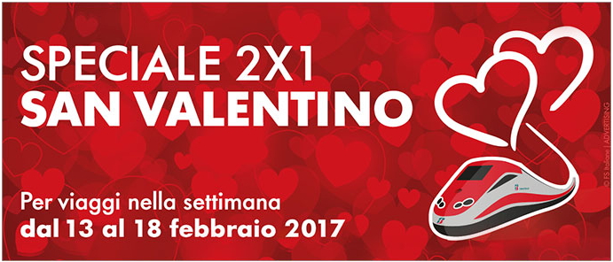 La compagnia ferroviaria Trenitalia ha appena lanciato un’interessante promozione in occasione di San Valentino che permette di viaggiare in 2 al prezzo di 1 su tutti i treni nazionali in 1° e in 2° classe nei livelli di servizio Business, Premium e Standard (sono esclusi i treni regionali, il livello di servizio Executive e i servizi cuccette, VL ed Excelsior)Â