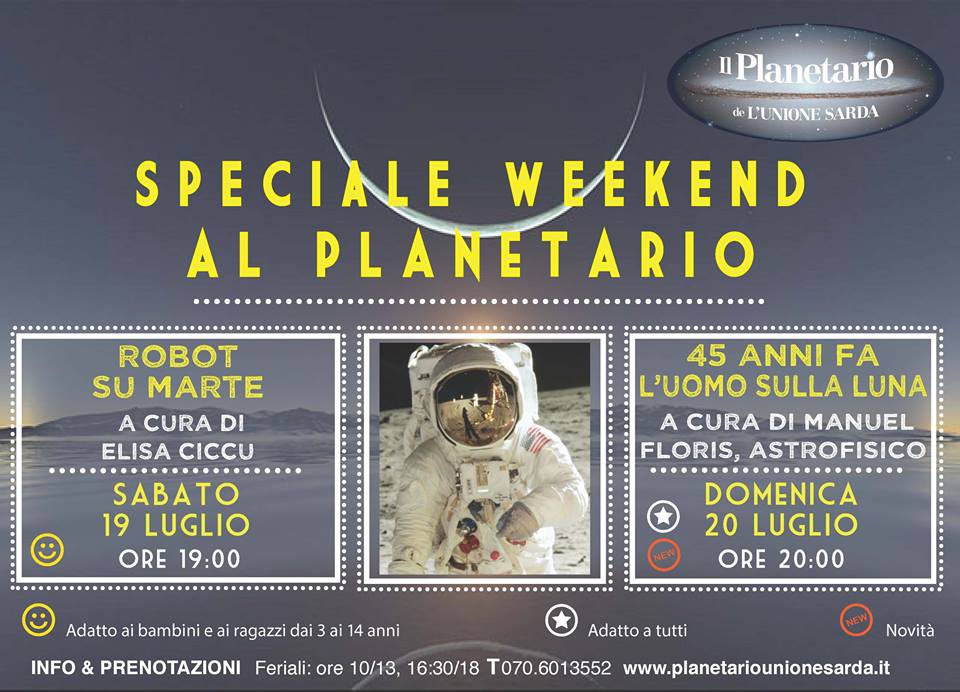 SPECIALE WEEKEND AL PLANETARIO DI CAGLIARI – 19-20 LUGLIO 2014SPECIAL WEEKEND AT PLANETARIUM OF CAGLIARI – JULY 19 TO 20,2014 Reviewed by admin on . Grande weekend al Planetario di Cagliari - 19-20 luglio 2014Great weekend at Planetario Cagliari - 19-20 July 2014 Grande weekend al Planetario di Cagliari - 19-20 luglio 2014Great weekend at Planetario Cagliari - 19-20 July 2014 Rating: 0