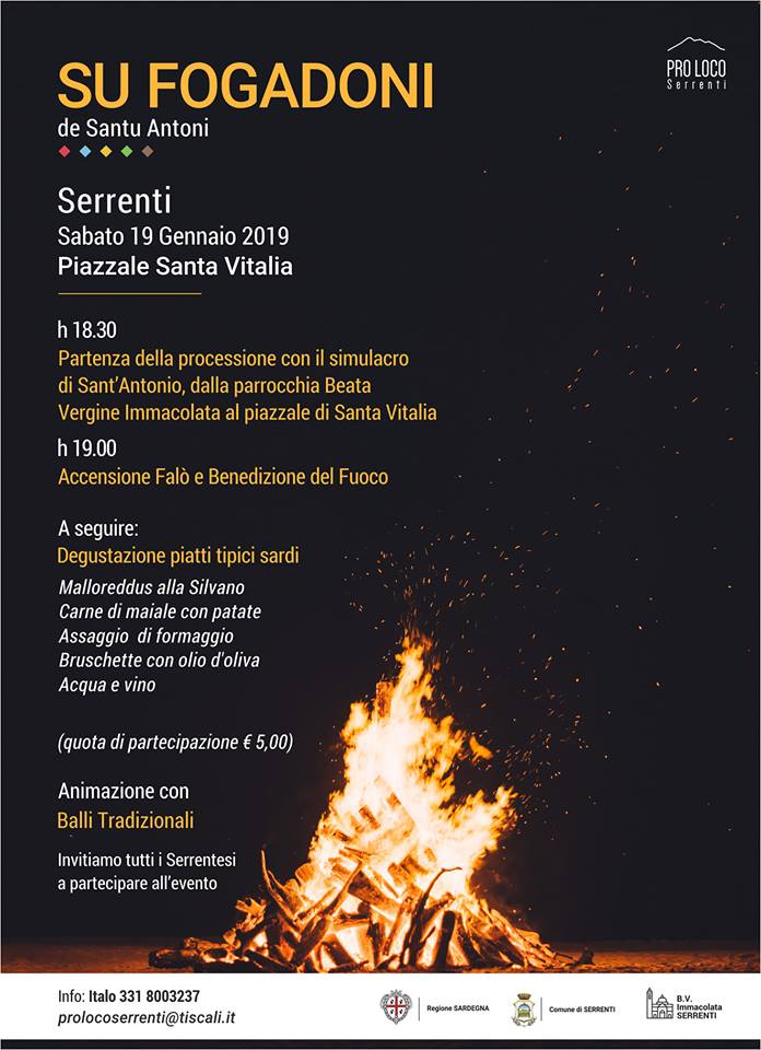 SU FOGADONI DE SANTU ANTONI – SERRENTI – SABATO 19 GENNAIO 2019