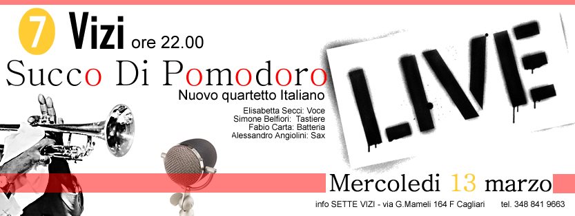 SUCCO DI POMODORO LIVE – SETTE VIZI – CAGLIARI – MERCOLEDI 13 MARZOTOMATO JUICE LIVE – SETTE VIZI – CAGLIARI – WEDNESDAY MARCH 13