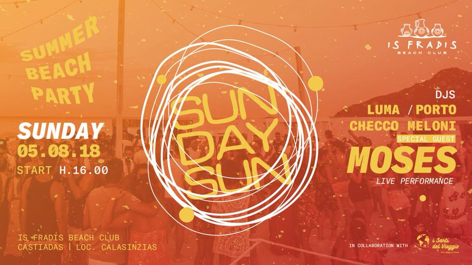 SUNDAY SUN – IS FRADIS BEACH CLUB – CALA SINZIAS -CASTIADAS – DOMENICA 5 AGOSTO 2018