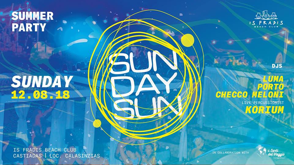 SUNDAY SUN PARTY – IS FRADIS – CALA SINZIAS – DOMENICA 12 AGOSTO 2018