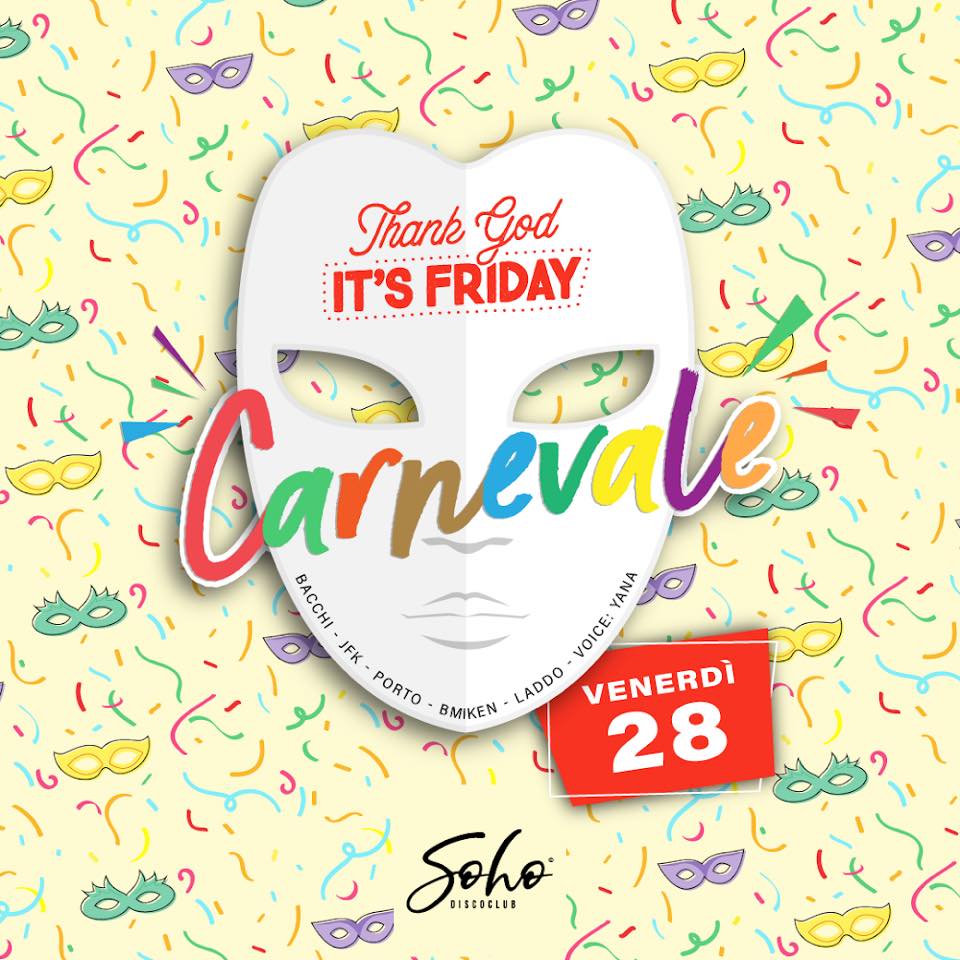 THANK GOD IT’S FRIDAY – CARNEVALE- SOHO DISCOCLUB – CAGLIARI – VENERDI 28 FEBBRAIO 2020